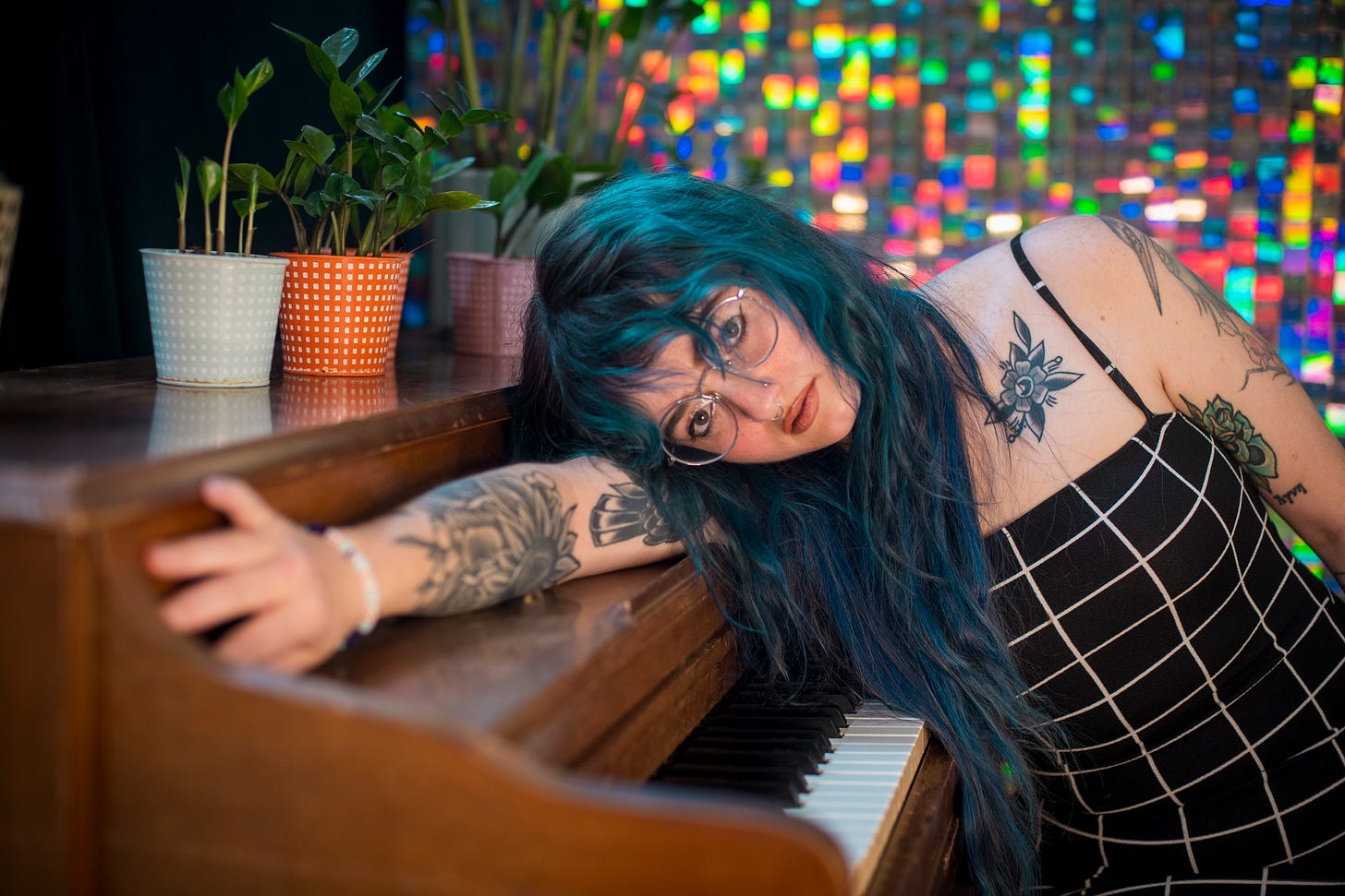 Mar rested against the piano like it was a familiar part of her body.
