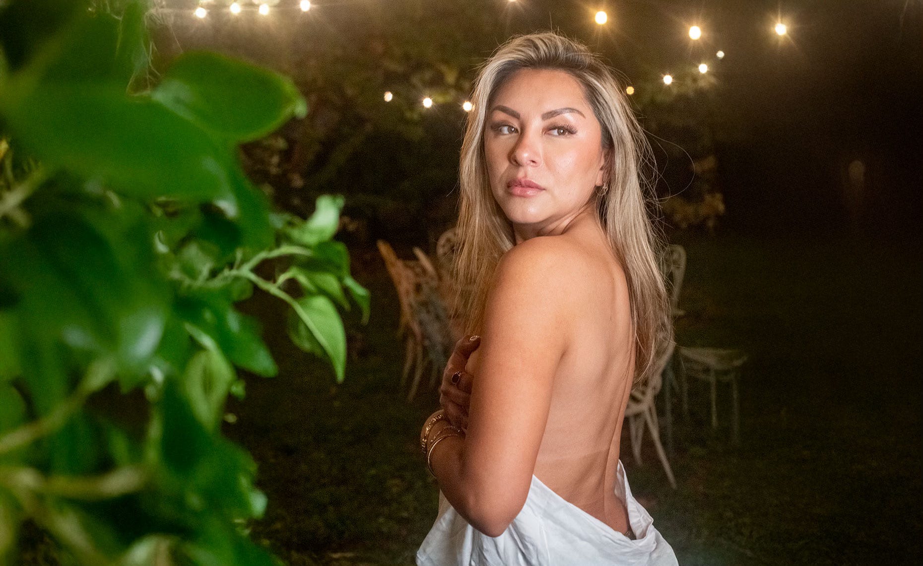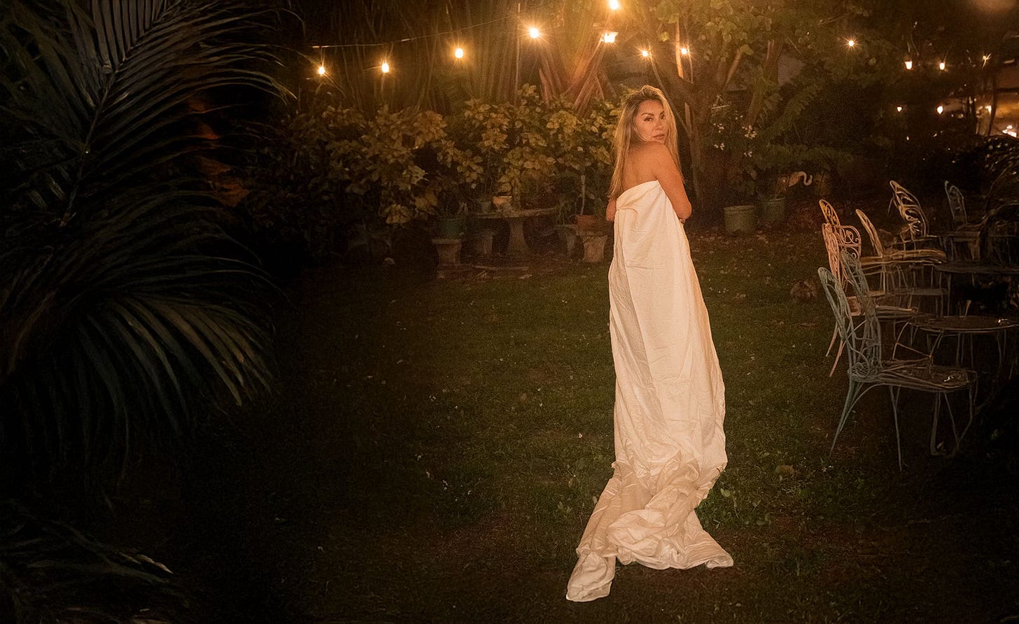 So when a friend’s son’s ex drifted through the door for a visit, something unexpected sparked. In a week where nothing had inspired me, I suddenly spotted a willing focus. I asked if she would step in front of my lens. No production. No styling. No plan. Only one light, a quiet backyard, the humid Miami night, and the hope that something worthwhile might unfold